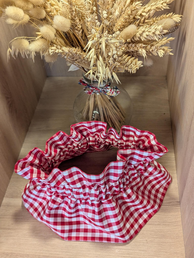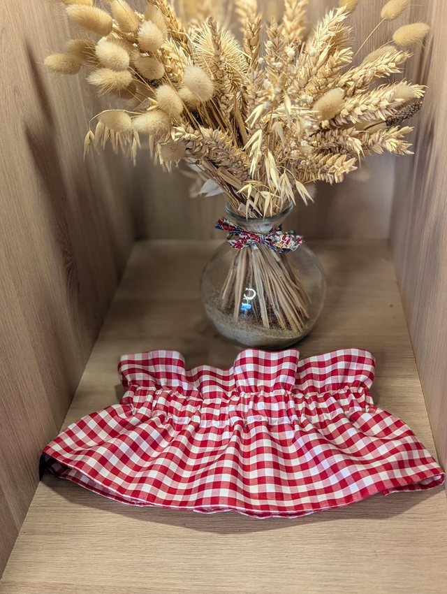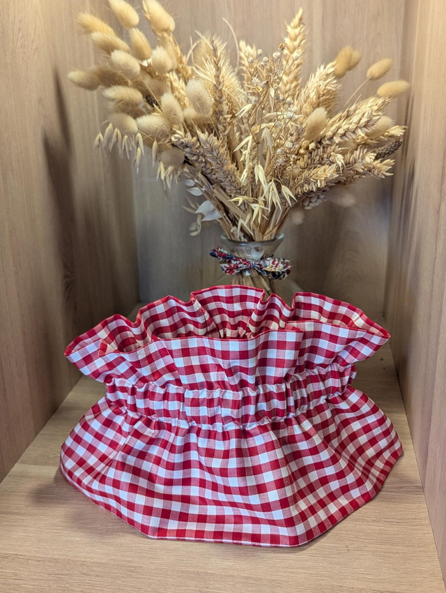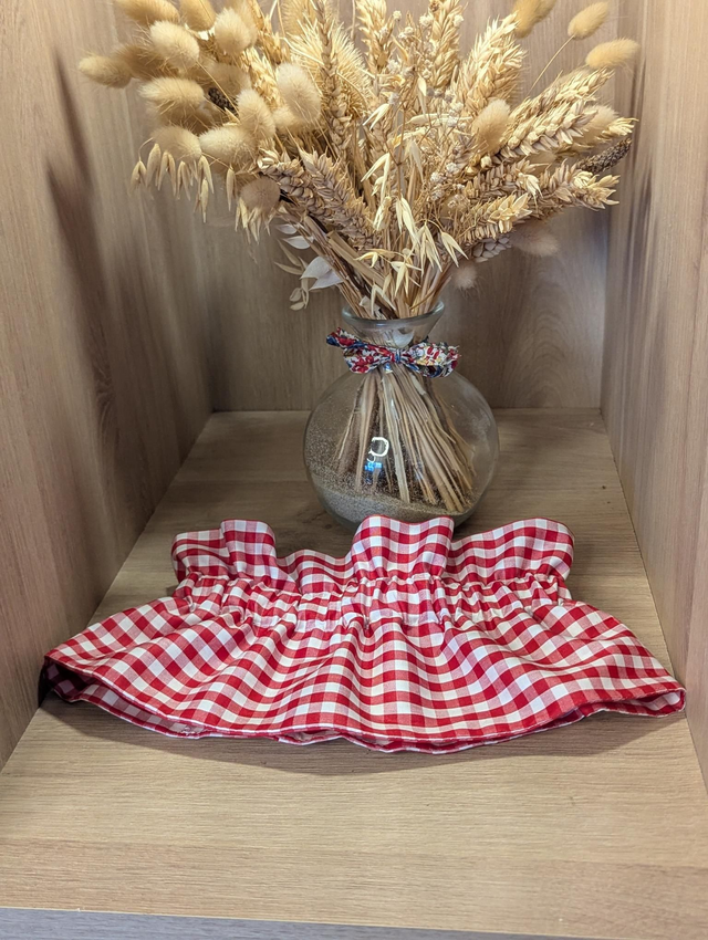 Il s'enfile par la tête et se resserre grâce à un élastique.