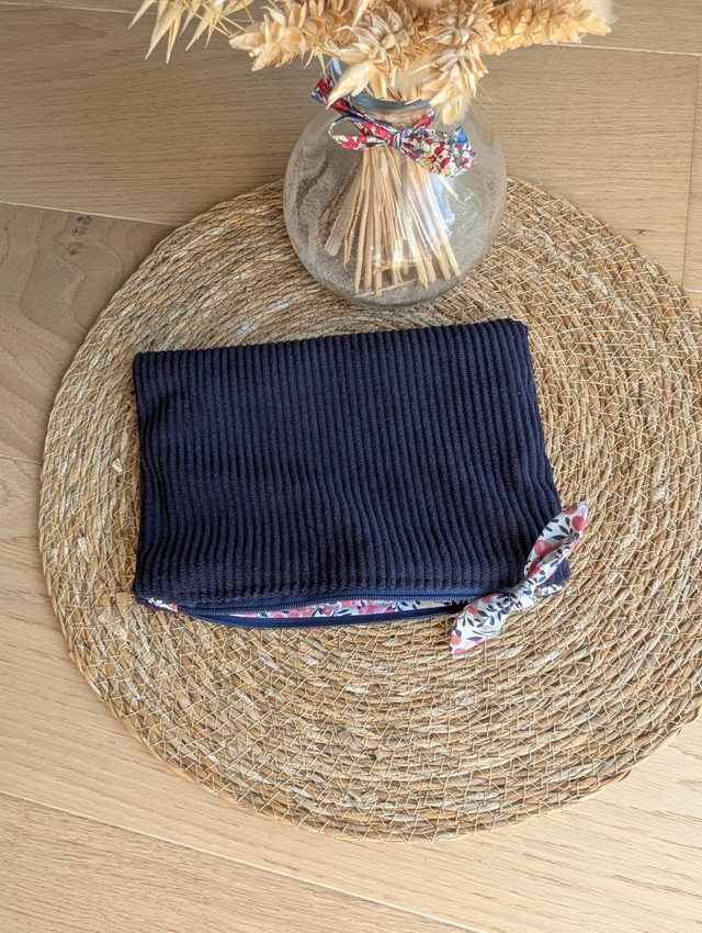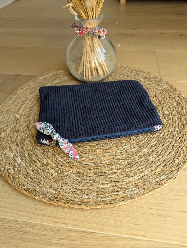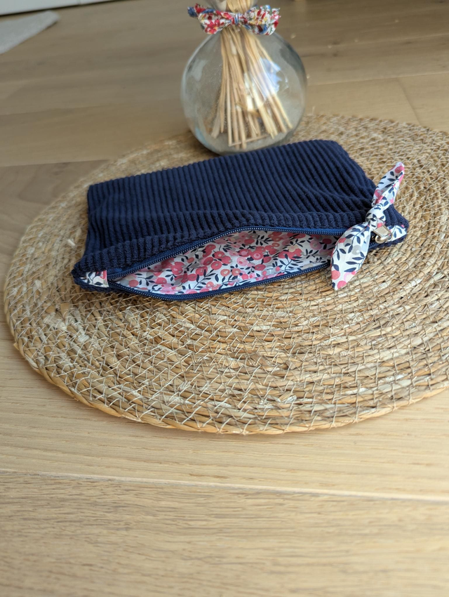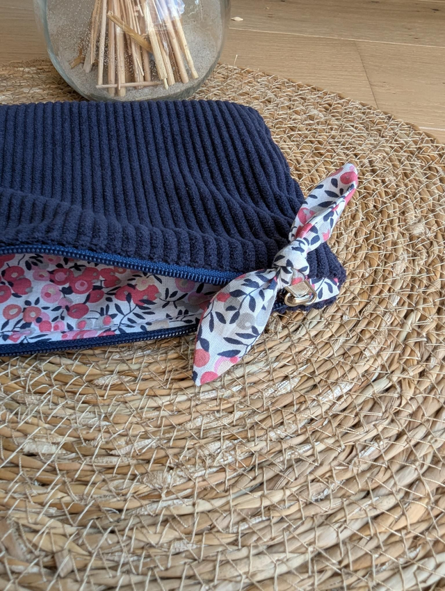 Pochette avec son petit nœud assorti au tissu intérieur pour plus de coquetterie.