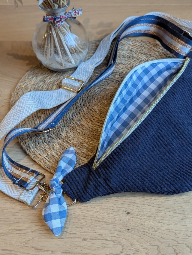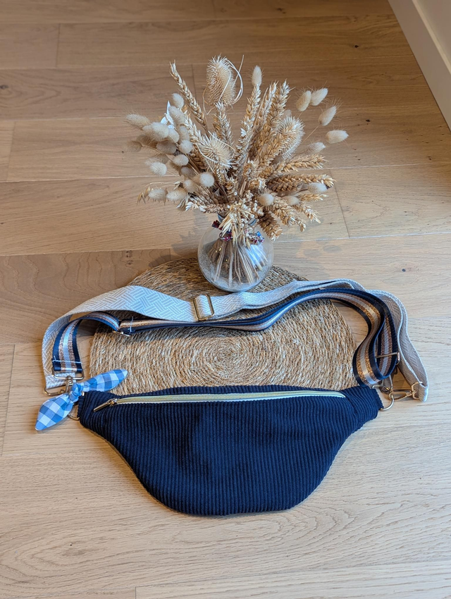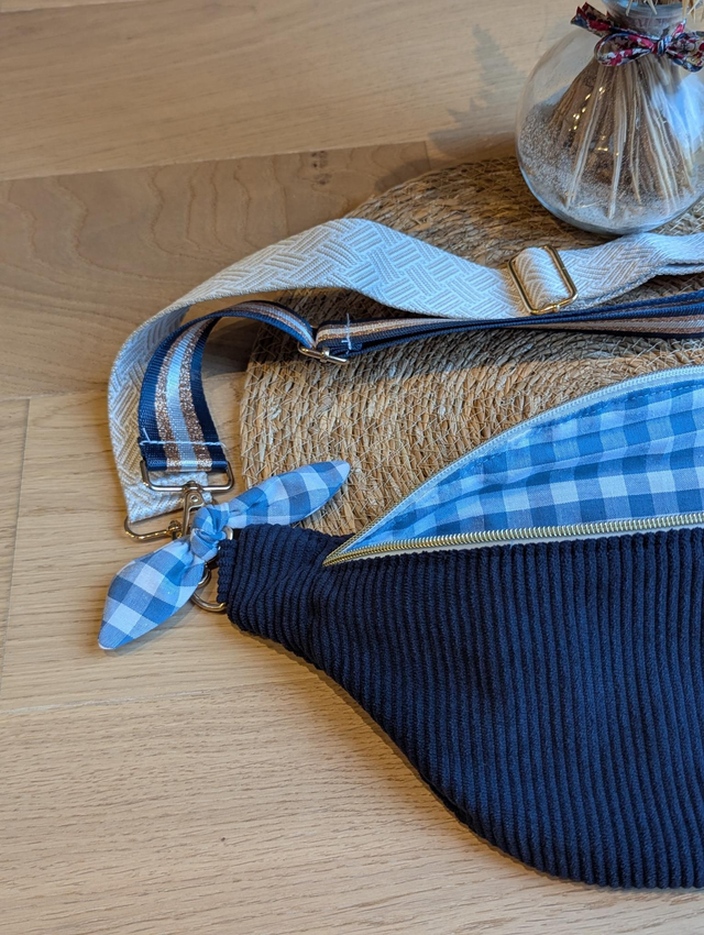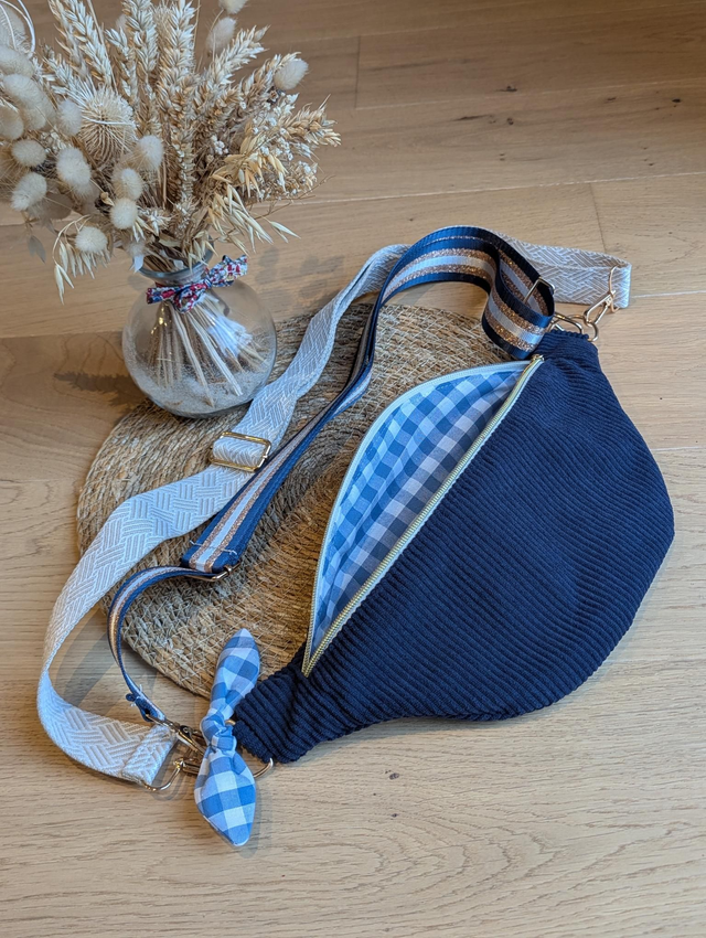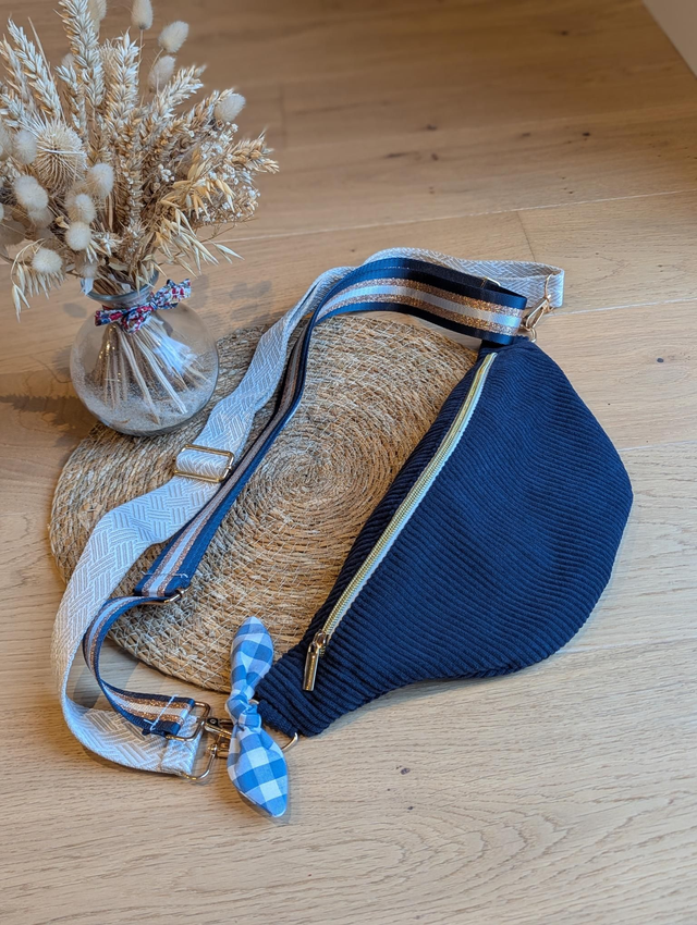Ce sac banane adulte est vendu avec deux sangles afin de varier selon vos envies et vos tenues, ainsi qu'un petit nœud assorti au tissu intérieur pour un peu plus de coquetterie.