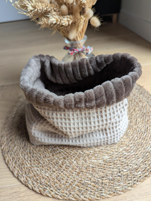 Tour de cou bien chaud grâce à son côté pilou pilou et épais avec le coté nid d'abeille.